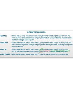 Negatif (-) : Hanya pita C yang berwarna, tidak adanya warna di kedua pita uji (Pan dan PF) menunjukan bahwa tidak ada antigen plasmodium yang terdeteksi. Hasil tersebut diartikan sebagai hasil negatif.